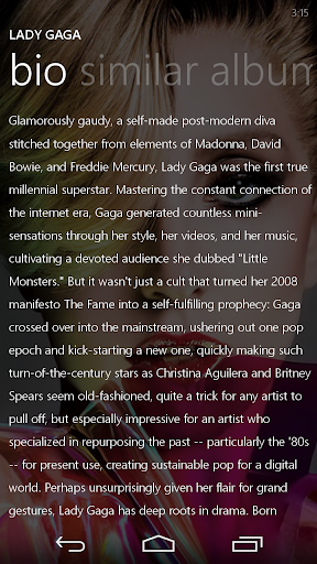 Ele usa um tema Windows Phone 7 / Zune, e assim mantém a interface do usuário minimalista, mas incorpora mais recursos em uma única aplicação que qualquer leitor de música Android disponível!